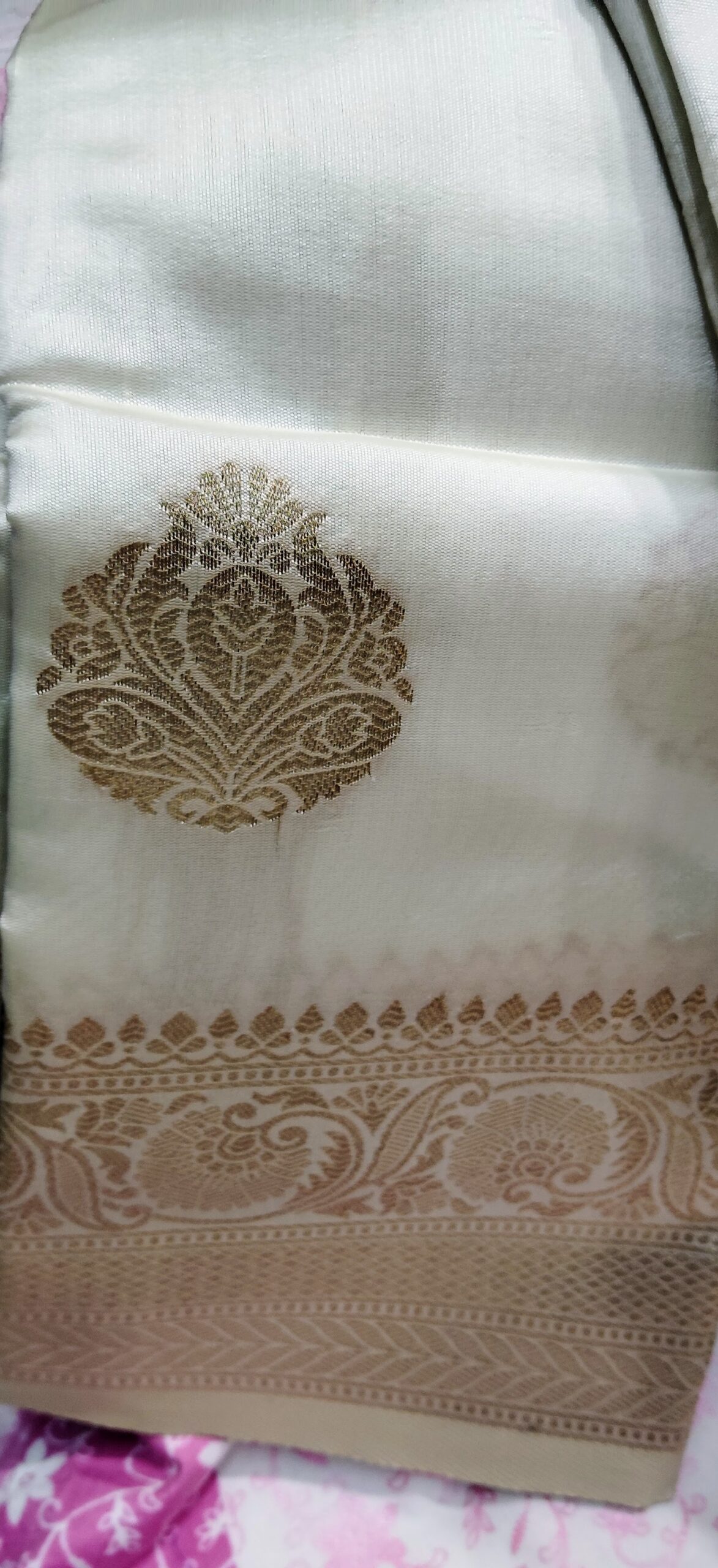 This saree is perfect for women who love traditional silk sarees but also want a modern touch in design and color. The cream and green combination is timeless and suits all skin tones, making it an excellent choice for gifting as well. Whether you are a bride-to-be, bridesmaid, or simply attending a grand function, this saree adds a royal charm to your presence.