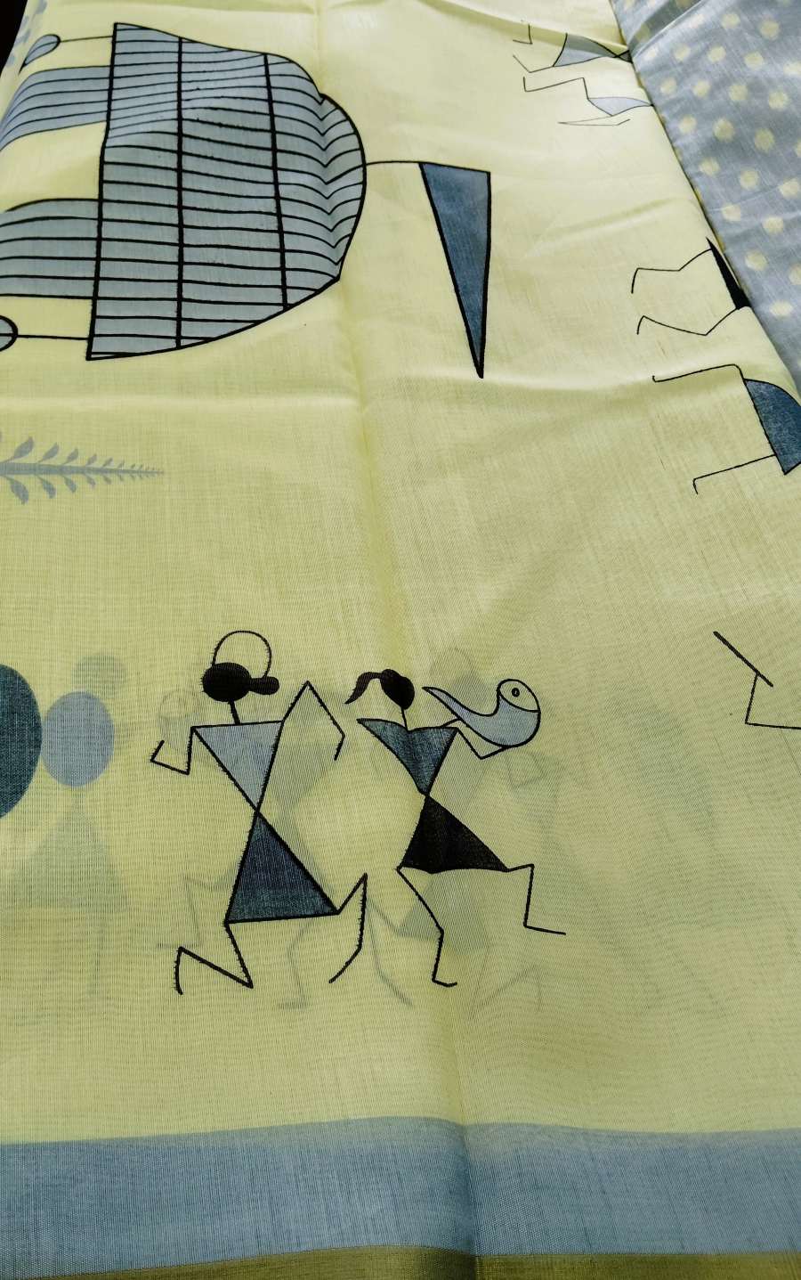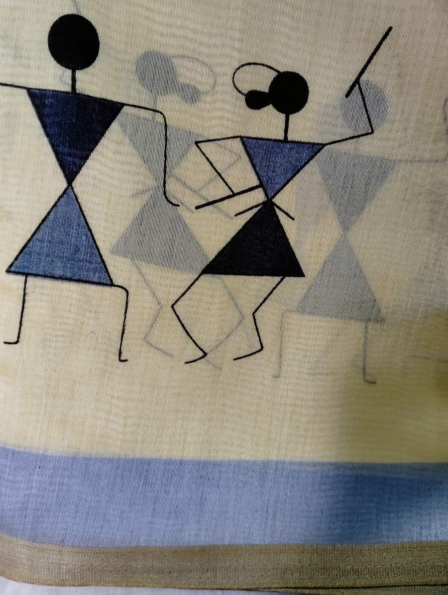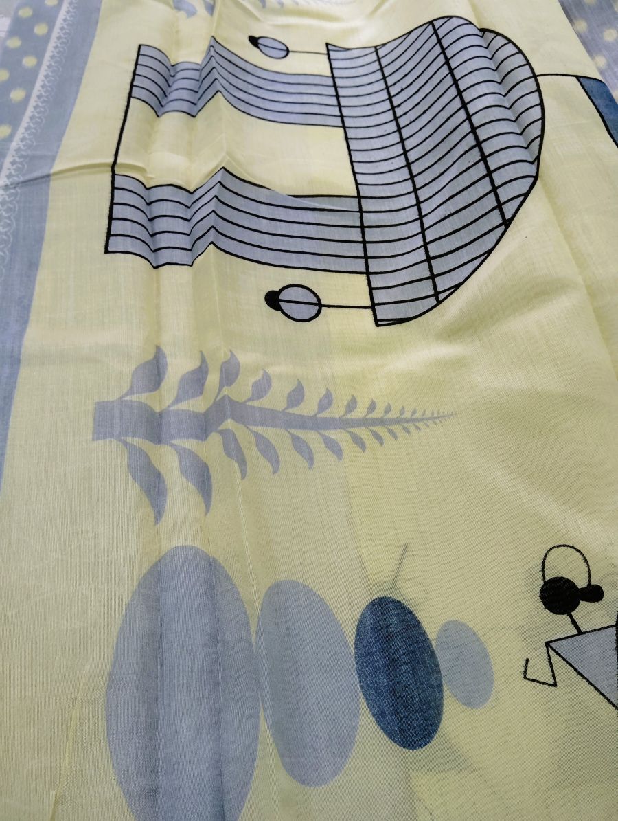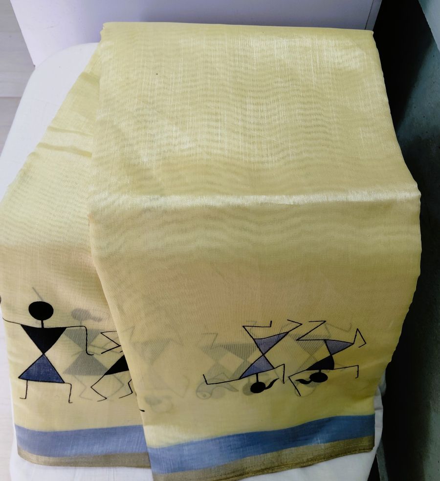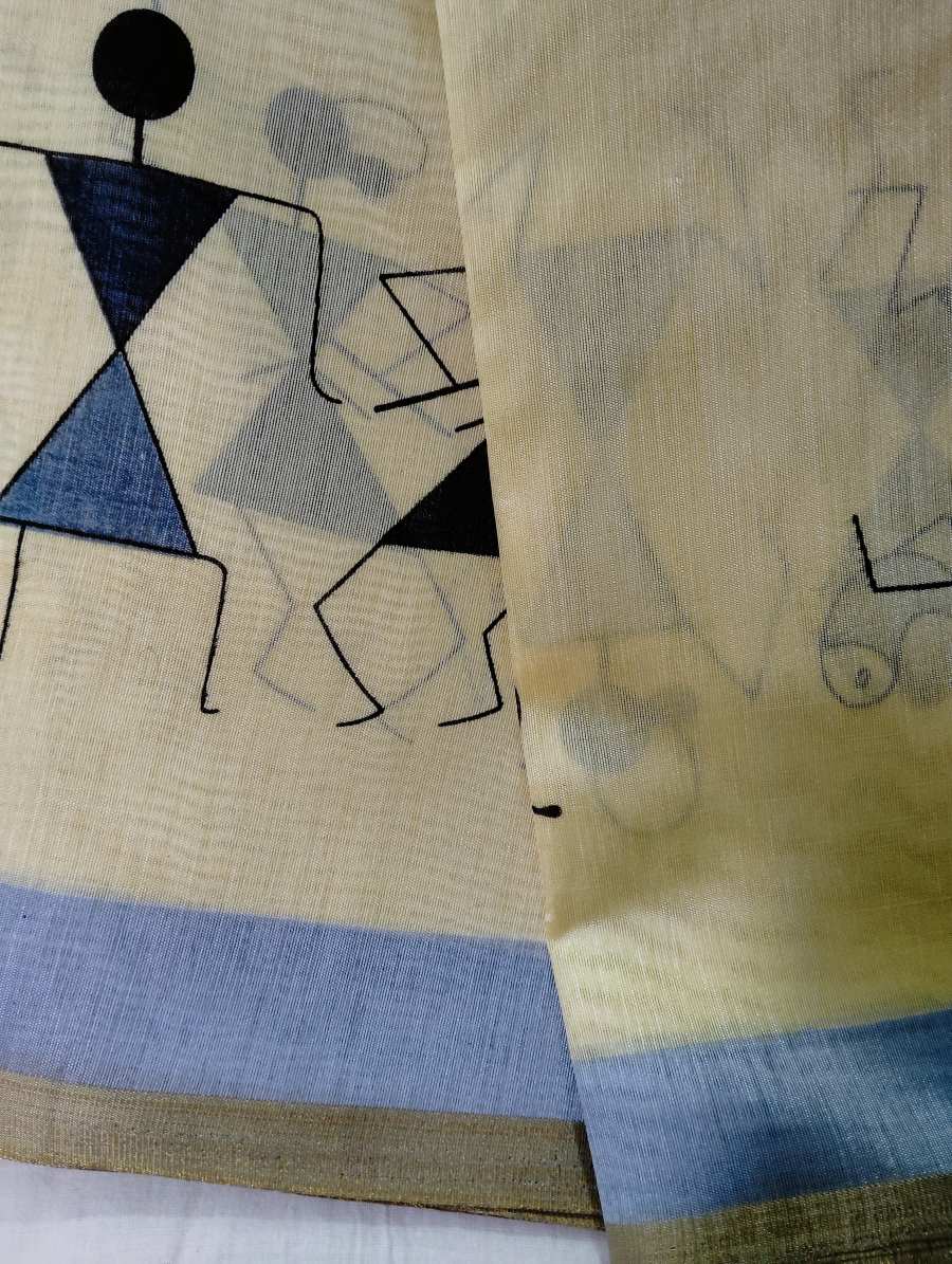 Designer Tribal Art Yellow Cotton Silk Saree