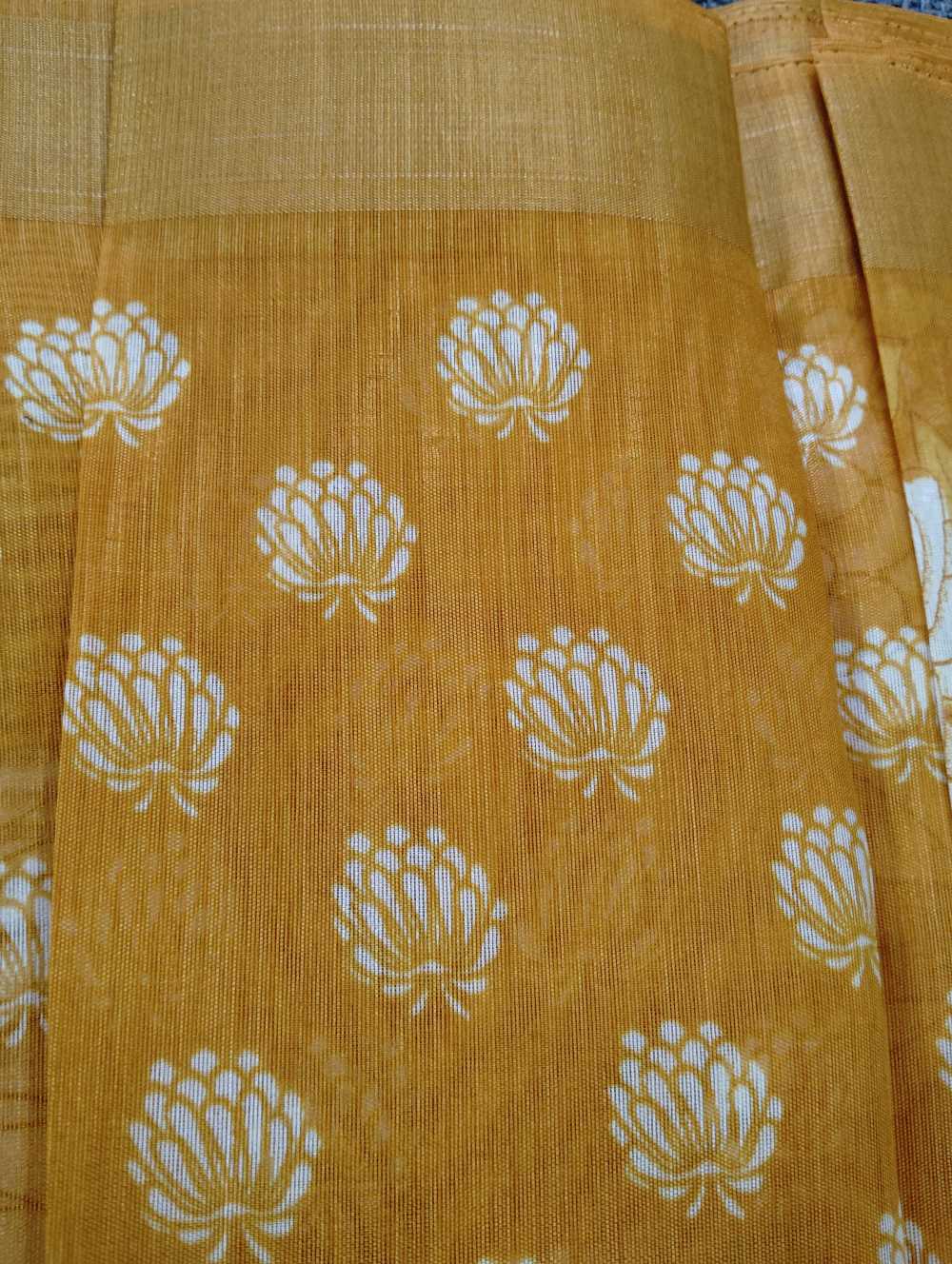 Styling this Mustard Yellow Floral Print Semi Cotton Saree is simple and versatile. Pair it with a cream, gold, brown, or matching mustard blouse for a graceful look. Minimal jewelry such as stud earrings, bangles, or a simple chain will enhance the saree’s understated beauty.