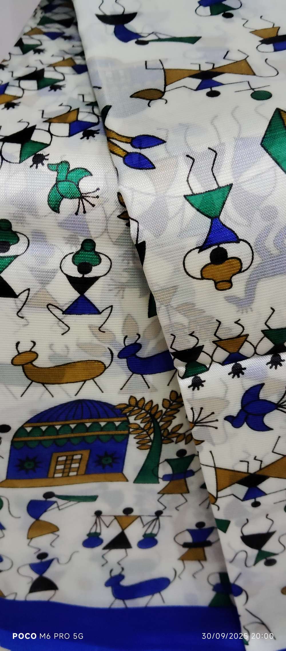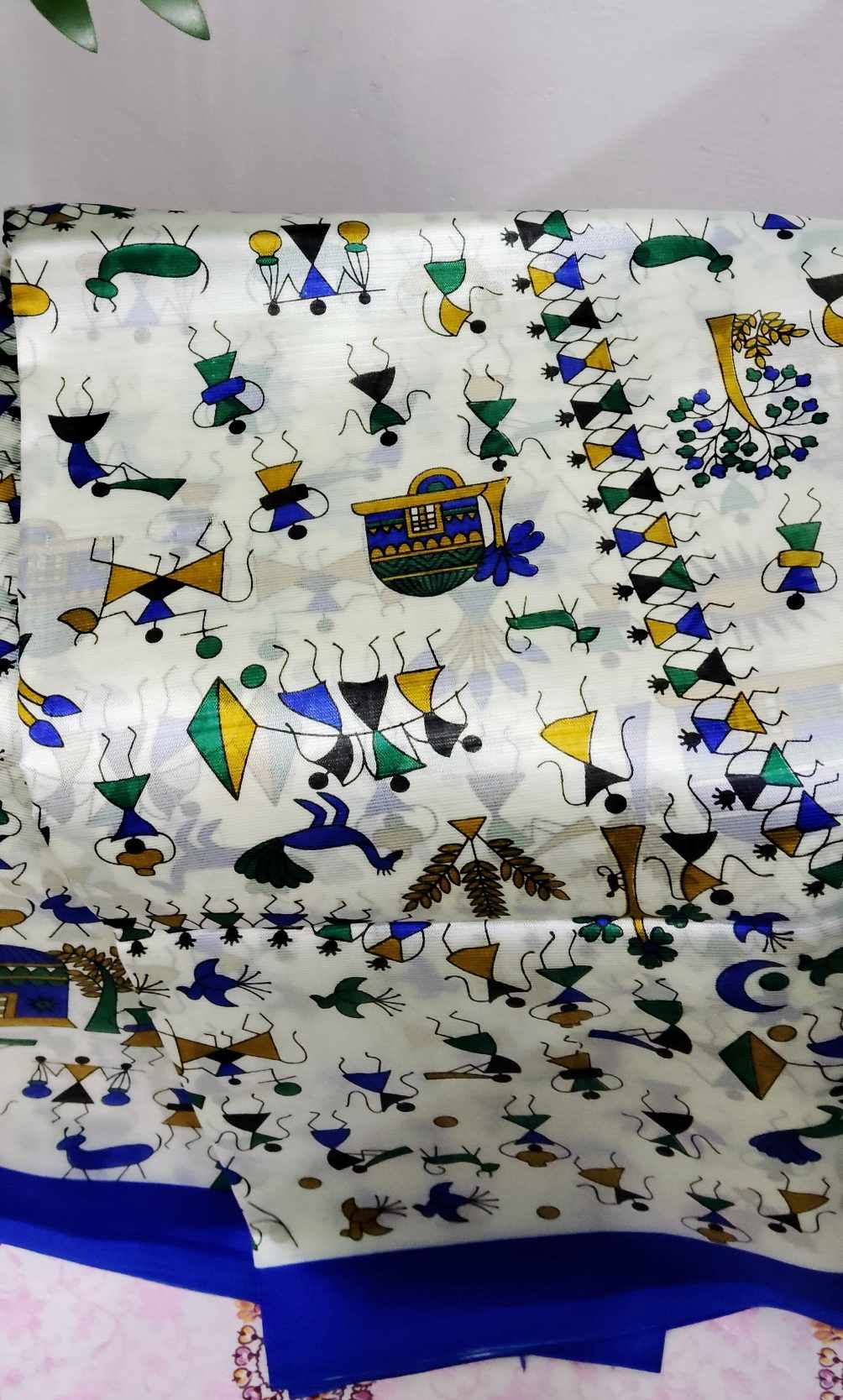 This White Warli Art Printed Soft Saree with Royal Blue Border is a beautiful blend of culture, comfort, and contemporary fashion. Designed for women who love unique ethnic pieces, this saree features stunning Warli tribal artwork, traditionally inspired by the folk art of Maharashtra. Each motif showcases village scenes, dancing figures, musical instruments, birds, and nature elements, all portrayed in vibrant shades of green, blue, mustard, and black. These lively patterns make the saree eye-catching, artistic, and full of storytelling charm.